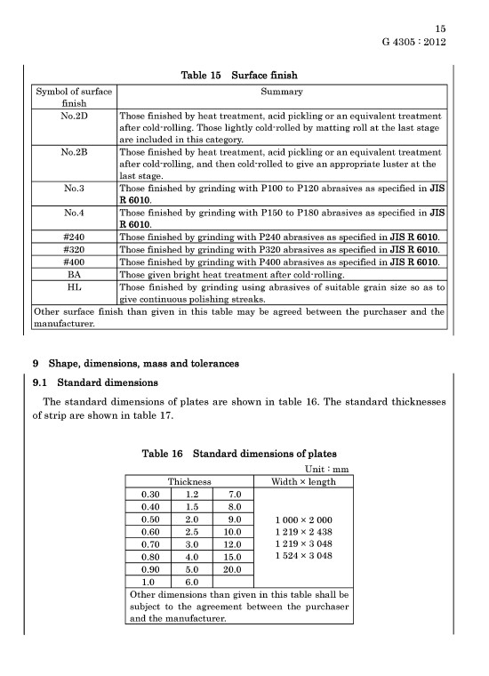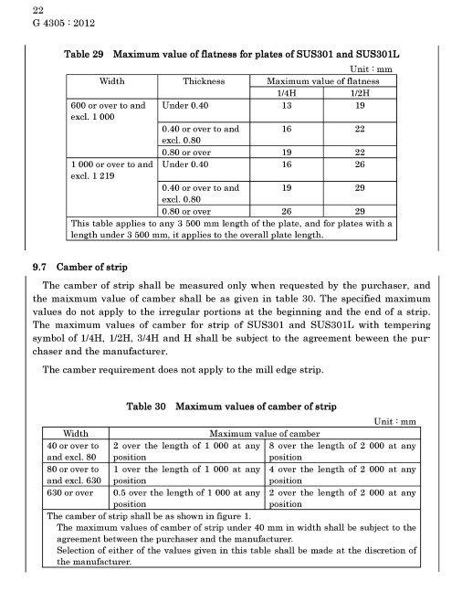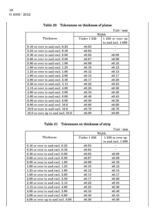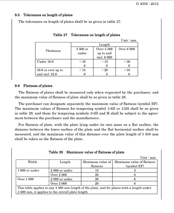 Dưới đây là một số thông tin của tiêu chuẩn JIS G4305:2012 và cũng là cơ sở để kiểm tra chất lượng hàng giao